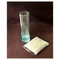 癒しの楽園バリ島の爽やかな淡いブルーのガラス製フラワーベース(花瓶)です。厚みがあって、手作りの温もりを感じる作品です。円柱形のシンプルなデザインで飾るお花を選びません。