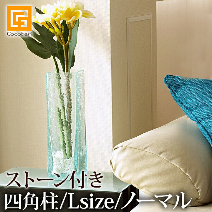 爽やかな白いナチュラルストーンをお付けします。バリでも実際にベースに使われているナチュラルストーンです。ナチュラルストーンを入れることで、大きな植物を入れたときにも倒れにくくなりますし、お花の角度や高さなど、バランスを調整しやすくなります。