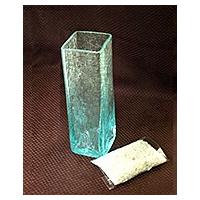 癒しの楽園バリ島の爽やかな淡いブルーのガラス製フラワーベース(花瓶)です。厚みがあって、手作りの温もりを感じる作品です。四角柱形のシンプルなデザインで飾るお花を選びません。