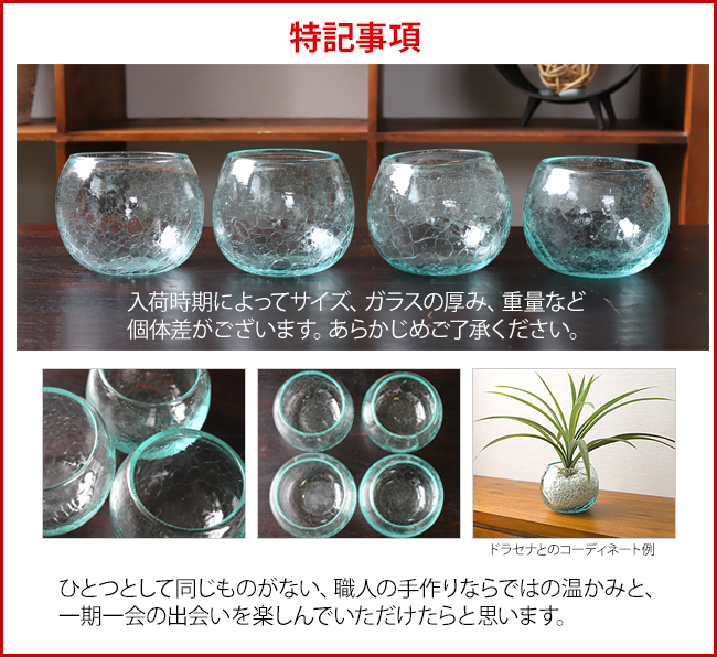 ガラス製品の特性上、気泡があったり、微かな傷などがある場合がございますが、ご了承ください。