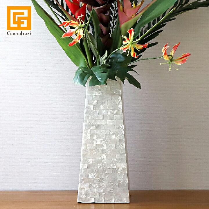 人気のシェルシリーズのフラワーベースのご紹介です。天然のシェル(貝殻)を貼り合わせて作る手間のかかる一品です。光の当たる角度によって、シェルがキラキラと輝きます。