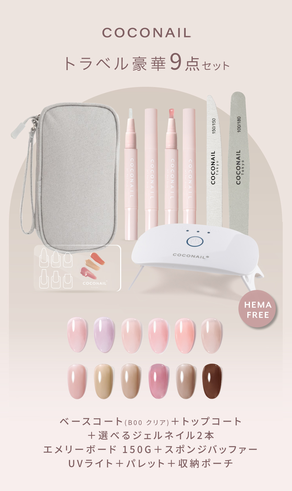 【春新色発売★トラベル9点セット】はがせる HEMAフリー ジェルネイル ベース・トップ付き 初心者 トラベルキット 母の日 プレゼント ネイリスト監修