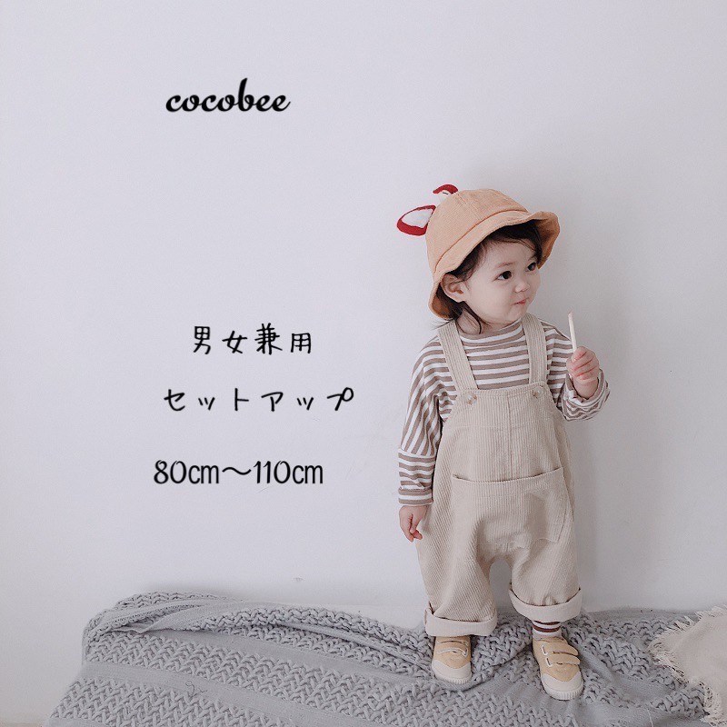 送料無料 子供ロンTセットアップ コーデュロイ 子供サロペット女の子男の子 オバーオール男女兼用セットアップ 海外子供服 韓国子供服80 90100110cm