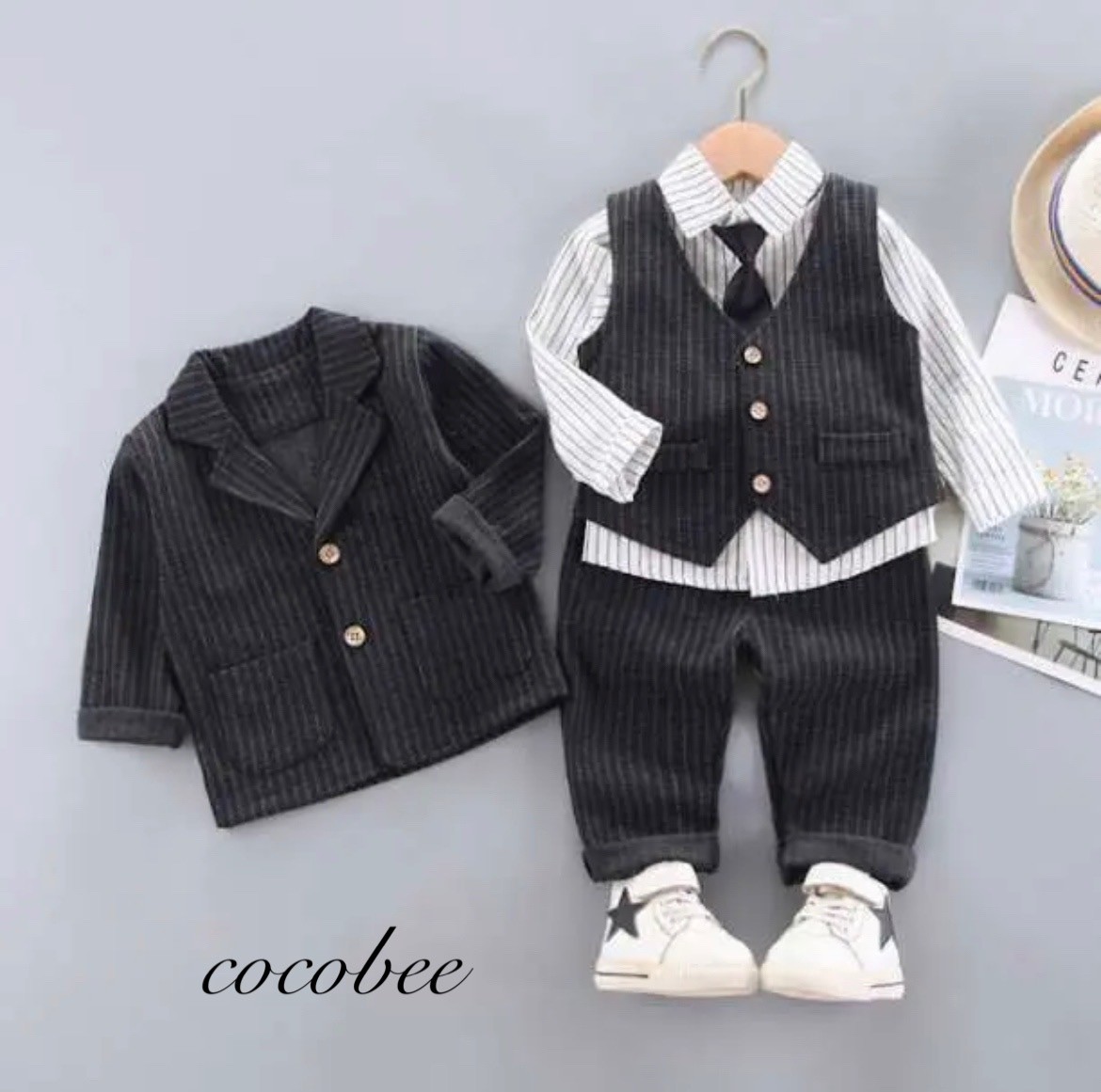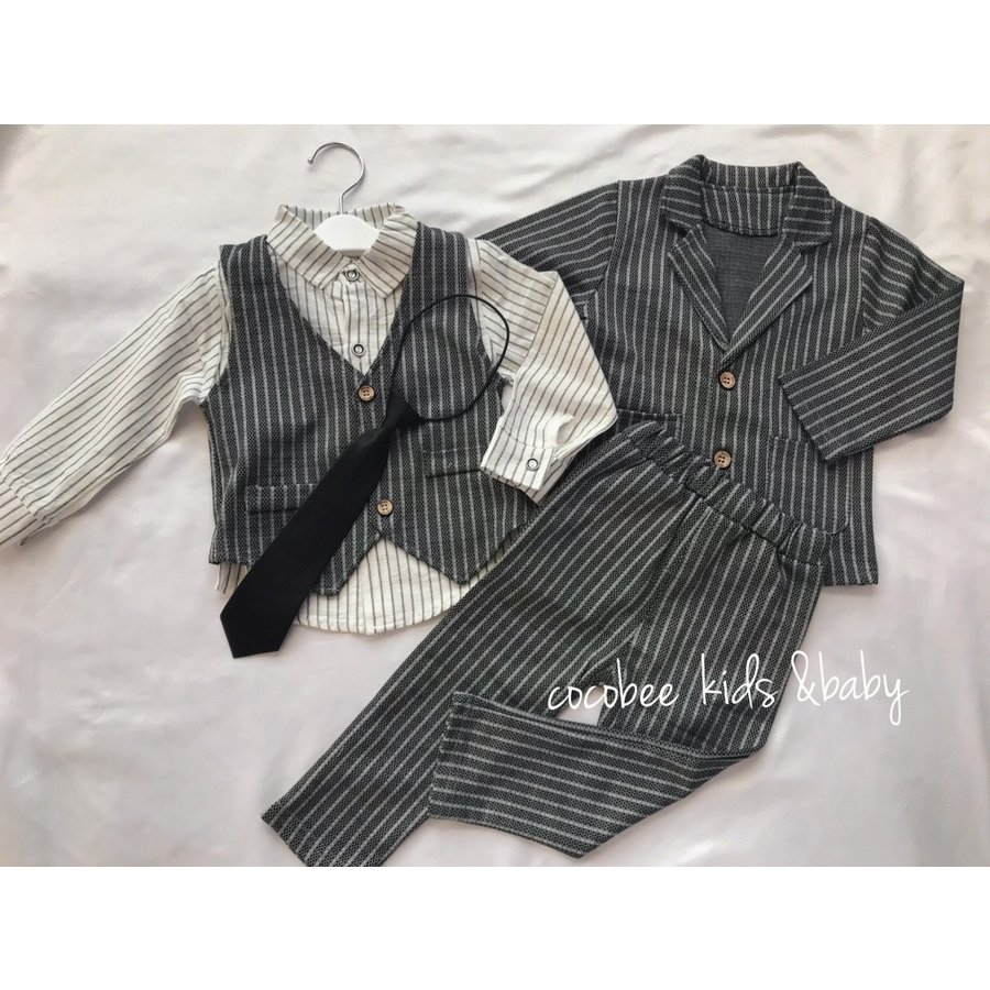 ジャケット シャツ ベスト ズボンウエストゴム入り ネクタイ
