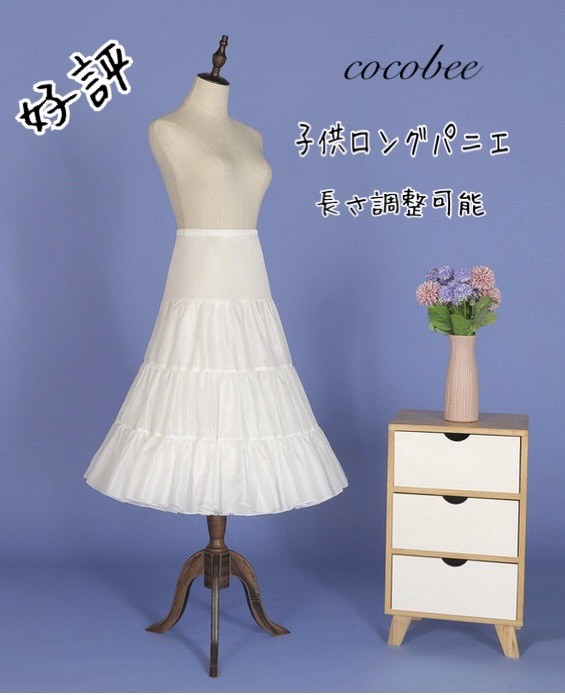 送料無料 大人気キッズ子供ロングパニエ 最安長さ調整こどもパニエ 子供パニエ ジュニアパニエ ホワイトパニエ フリーサイズパニエ ふんわり子供ペチコート