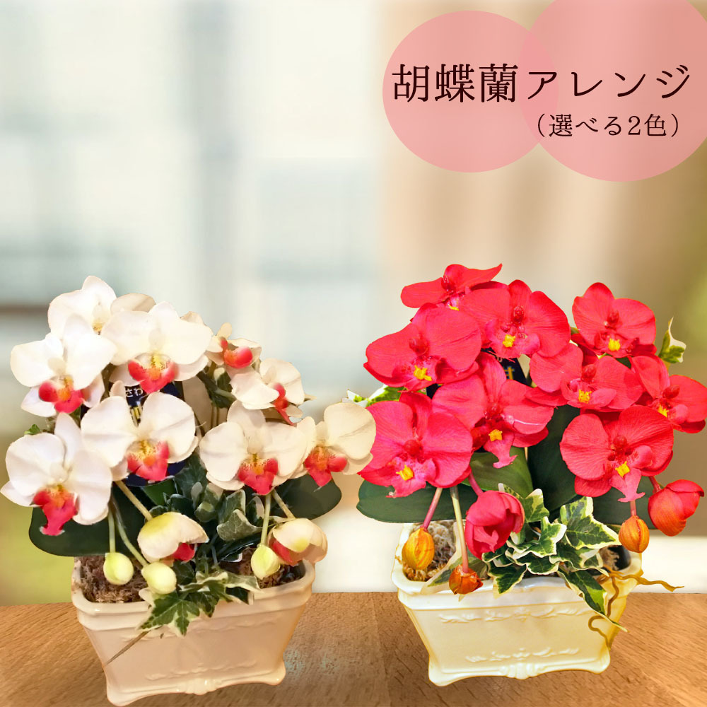 母の日 花 胡蝶蘭 ミニ アレンジ 造花 光触媒 お祝い 白 ホワイト 赤 レッド かわいい 誕生日 大輪 長寿 プレゼント ギフト コチョウラン
