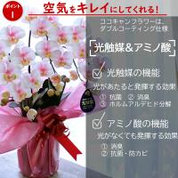 ココキャンフラワーのインパクトのある 光触媒 胡蝶蘭 3本立ち。根の動きまでこだわって仕上げていますので、ボリュームや完成度にもご納得いただけることと思います。花の色が9色から選べる豊富なラインアップも当店の特徴です。