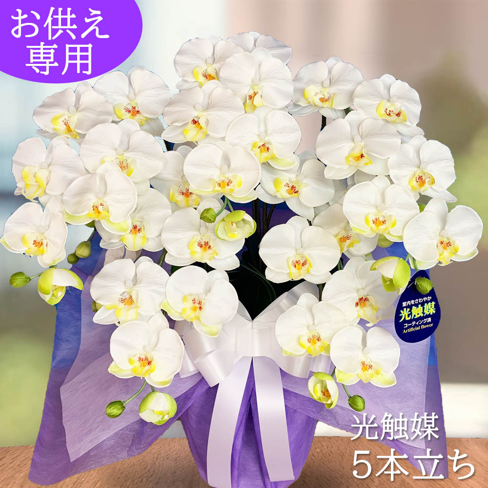 仏花 胡蝶蘭 5本立ち 光触媒 大輪 造花 お供え 豪華 法要 四十九日 命日 お盆 新盆 初盆 お悔やみ 鉢植え 枯れない花 ギフト プレゼント 送料無料
