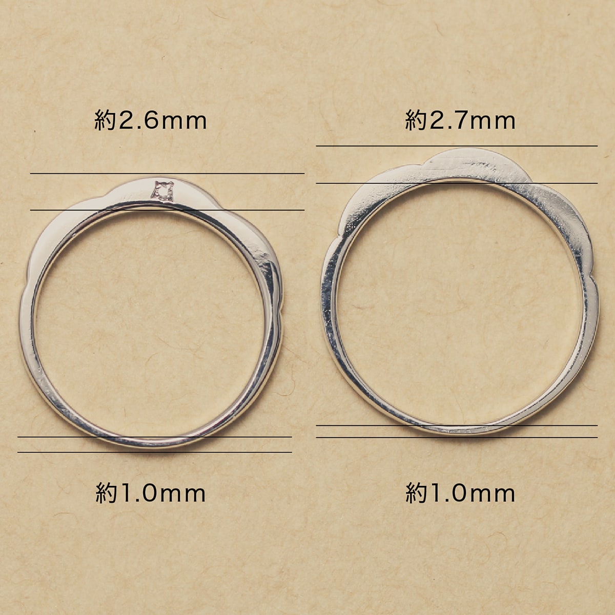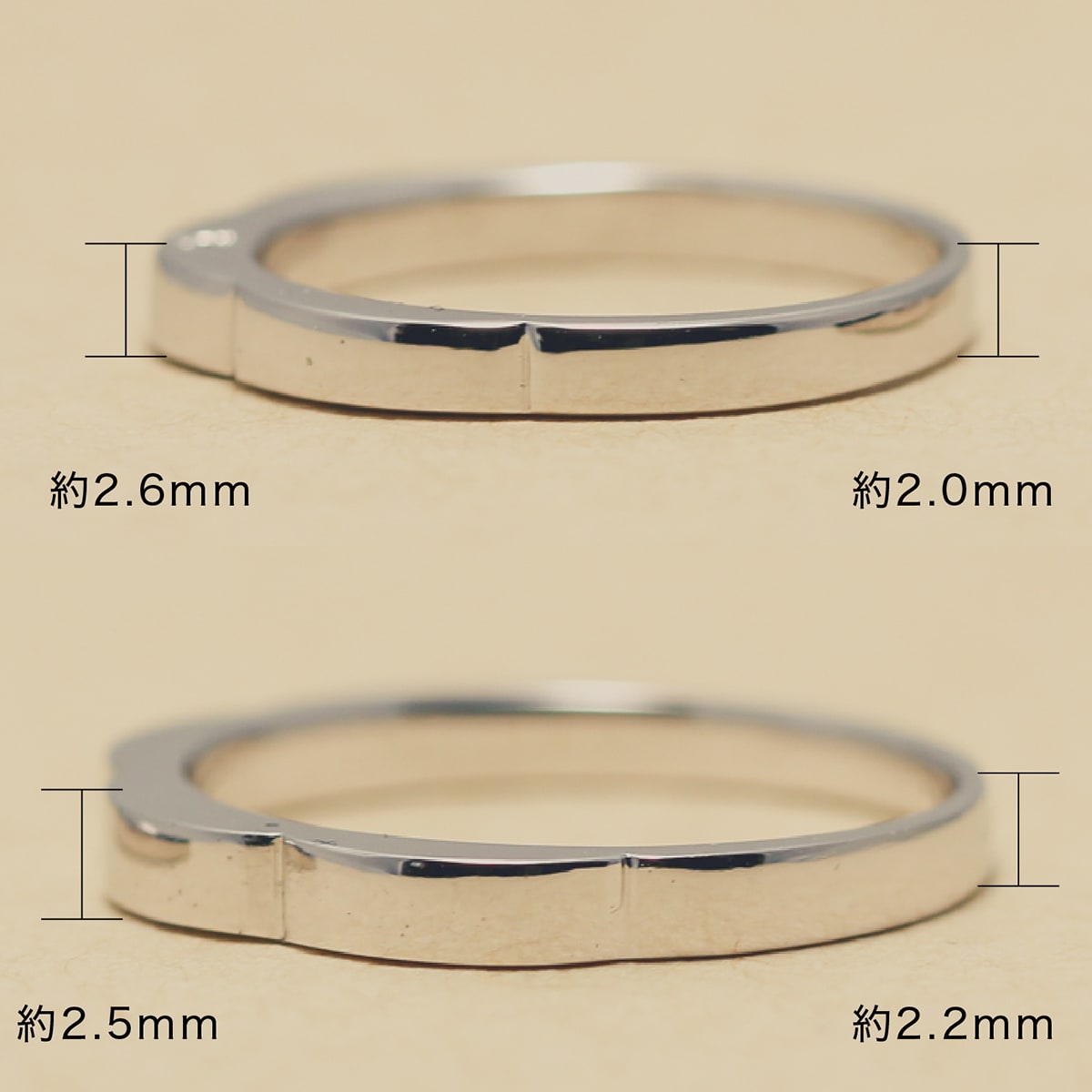 レディース平均重量約1.88g・メンズ平均重量約2.08g