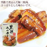 【黒酢ラフテー】豚バラ肉、糖類(上白糖、果糖ぶどう糖液糖、黒砂糖)、米黒酢、しょうゆ、穀物酢、リンゴピューレ、みりん、穀物ベース醗酵調味料、泡盛、食塩/増粘剤(加工でん粉、キサンタンガム)、調味料(アミノ酸等)、(一部に小麦・豚肉・大豆・りんごを含む)
