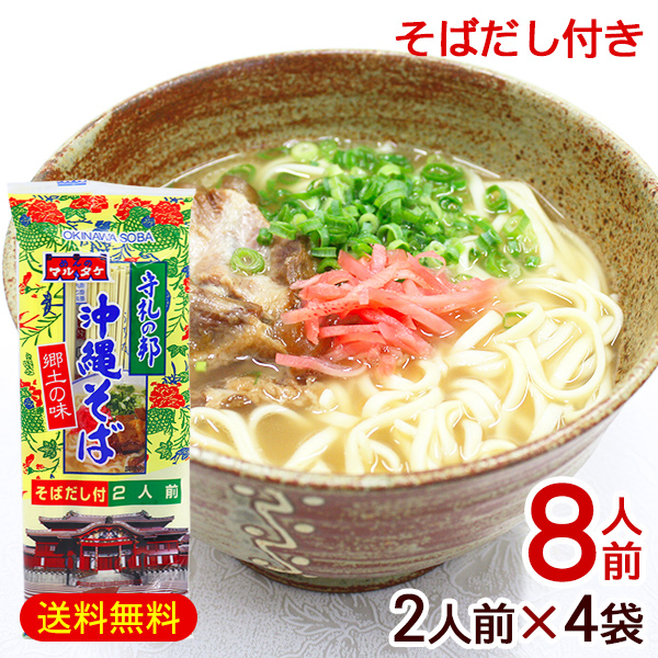 マルタケ 沖縄そば 2人前×4袋(8人前) だし付き /乾麺 沖縄 お土産 ご当地麺(M便)