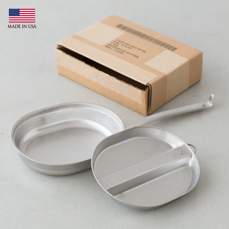 WYOTT社が米軍に納入していた実物の放出品メスキット、オリジナルBOX入りの未使用品です。アメリカではWW1の頃すでに実用されていた歴史ある製品、機能美を追求した無駄のないつくりに惚れ惚れします。本物志向のキャンパーやミリタリー&サバイバル愛好家の方にオススメ、安定供給できない希少性のある逸品です、いかがでしょうか。