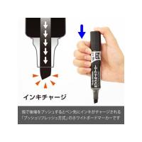 【仕様】●太字●インキ色:黒●インキ成分:アルコール系油性顔料●筆記線幅:3~7mm(平芯)●サイズ:φ24×126mm●キャップ安全性:ISO規格適合●プッシュリフレッシュ方式(後部ノック式)●材質/キャップ・ノック部・弁座・前軸:再生PP、ペン先:PE繊維、軸:PP●グリーン購入法適合●GPNデーターベース掲載