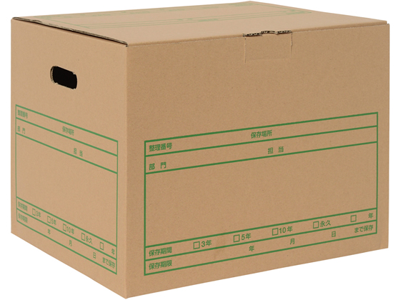 【商品説明】取っ手穴付きで持ち運びに便利です。底面の組み立てがワンタッチででき、粘着テープで留める必要がありません。内容物の表示欄が印刷されているので、文書類、帳票類の整理保管に便利です。【仕様】●色:クラフト●サイズ:A4/B4●フタ:有●耐重量:約20kg●積み重ね:最大4段●D型 フタ式●ワンタッチ組み立て式●材質:段ボール(古紙パルプ配合)●内形寸法(組立時):幅400×奥行330×高さ310mm●注文単位:1パック(10枚)●グリーン購入法適合●GPNエコ商品ねっと掲載