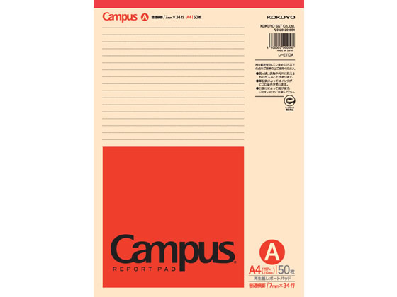 コクヨ 再生紙レポート箋 A4普通横罫 50枚 レ-E110A A罫 罫線7mm A4サイズ レポート用紙 ノート