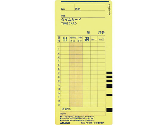 アマノ タイムカード TimeP@CKカード 6欄印字 A 100枚 アマノ タイムカード タイムレコーダー 事務機器