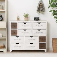 【商品説明】ホワイトウォッシュで仕上げたアンティークフレンチを思わせるおしゃれなデザイン。 ブラウンカラーもアクセントに。 引き出し内寸28×25.5×12cmのボックスは深さもあるので、用途に応じてたっぷり収納できます。 引き出し内寸13.5×25.5×12cmのボックスにはハンドタオルや靴下などサイズの小さな小物をスッキリ収納♪【仕様】●サイズ:W840×D325×H710mm●重量:10kg 【詳細サイズ】■耐荷重(全体):20kg■天板厚み:16mm■引出内寸(大):280×255×120mm■引出内寸(小):135×255×120mm 【材質】■構造部材(天板):繊維板[ポリウレタン塗装]■構造部材(フレーム):天然木(桐)[ラッカー塗装]■構造部材(引出):天然木(杉)