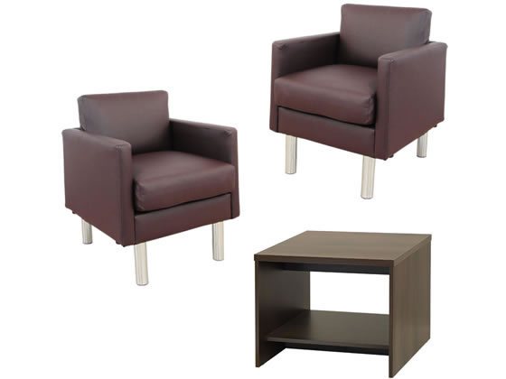 【仕様】●カラー:ブラウン●サイズ:1人掛けソファ/幅630×奥行630×高さ740mm(座面高430mm)/1台あたり、センターテーブル/幅550×奥行550×高さ450mm●材質:ソファ/張地:PVCレザー・ウレタンフォーム、木フレーム、脚:スチール、センターテーブル/天板:メラミン樹脂化粧板、芯材:MDF+ハニカムコア、エッジ:PVC、脚部:ABS樹脂●セット内容:1人掛ソファ×2、センターテーブル×1●注文単位:1セット●保証期間:1年間 ※原則、軒先(玄関先)渡しとなります。 階上、階下となる場合、またエレベーターのご使用ができない場合、段差があるなど、納品場所の状況によりましては1階軒先でのお渡しとなります。 【別途送料について】 お届け先が法人の場合、必ずお届け先に会社名をご記載ください。 別途送料が発生する場合、ご注文後、翌営業日中にご案内いたします。 【配送不可地域について】 沖縄・離島・遠隔地は配送不可地域となり、商品のお届けができかねます。 お届け先が配送不可地域の場合、キャンセルとさせていただきます。予めご了承ください。