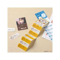 【商品説明】印刷してから切り離すだけで、綴りタイプのチケット・回数券を少量から作成できます。 コーヒー・ドリンクチケットやクリーニング・入浴回数券などにおすすめの11枚綴りタイプ。 ミシン目入りなので、手で簡単に切り離せます。 また、財布やカードケースに入れやすいコンパクトなサイズに折りたたむこともできます。 チケットとチケットの間に余白があるので、隣り合うチケット同士を別のデザインにすることも可能!【仕様】●サイズ:210×297mm(A4) ●ミシン目切り離し後のサイズ:チケットのサイズ/55×288mm(チケット一片のサイズ/55×21mm) ●入数:10シート(チケット30枚分) ●素材:上質紙 ●面付け:11枚綴り×3面 ●厚さ:0.15mm ●坪量:128g/m2 ●プリンタ対応:カラーレーザー、モノクローレーザー、カラーコピー、モノクロコピー、インクジェット