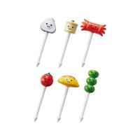 【商品説明】かわいいマスコットの付いたピックです。 食材をさすだけで簡単にカラフルなお弁当が作れます。 おかず用のフォーク代わりになって便利です。 お子様の遠足のお弁当やお誕生日会などのホームパーティーに。 デザートなどにさせば華やかな印象に。 洗って繰り返し使えます。 万が一、口の中で噛んでしまっても折れない柔軟性のある素材で出来ています。【仕様】●セット内容:おにぎり・しゅうまい・カニウィンナー・プチトマト・オムライス・エダマメ×各1本●材質:ABS樹脂●商品サイズ:おにぎり/約44×13.4×7.8mm、しゅうまい/約42.6×11×11mm、カニウィンナー/約41×22.1×8.2mm、プチトマト/約43.3×11×11mm、オムライス/約40.5×19×10.7mm、エダマメ/約45.6×9.3×6mm●注文単位:1袋(6本) ※電子レンジ・オーブンはご使用いただけません。