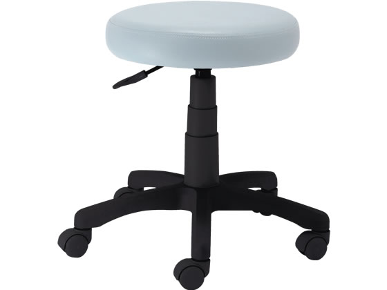 【仕様】座面が水拭きできるPVCレザー張り。座面直径390mmのゆったりサイズのラウンドチェア。●外寸法:幅535×奥行510×高さ425mm●座面高さ:425〜555mm●座面寸法:幅390×奥行390mm●材質:座/(張り地)PVCレザー(中身)ウレタンフォーム、本体・脚・キャスター/ナイロン●質量:5.2kg●昇降方式:ガス圧式●カラー:アイボリー●組立人数:1人●組立時間:5分●生産国:中国●注文単位:1脚
