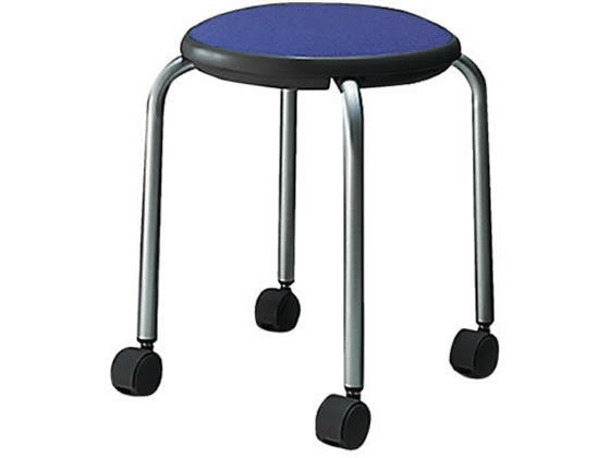 【商品説明】使わない時はスタックしてコンパクトに収納できます(スタック可能脚数:床5脚)。【仕様】●外寸法:幅490×奥行き490×高さ450mm●座面寸法:直径360mm●材質:座/(張り地)ポリウレタン系レザー(中身)ウレタン(座板)PP、脚/スチール丸パイプ(メラミン焼付塗装)、キャスター/ナイロン(双輪)●質量:2.6kg●スタック可能数:5脚●カラー:ミディアムマリン●生産国:日本●単位:1脚 ※2019年度より仕様を見直し、旧色の近似の張り地に変更しております。