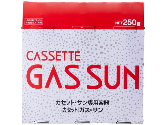 【商品説明】●カセット・サンシリーズ専用のカセットガスです。 ●製造後約7年を目安に使い切ってください。【仕様】●【使用上の注意】 ・この容器(ボンベ)はカセット・サン専用容器です。それ以外のこんろ等には使用しないでください。 ガスが漏れたり、着火しない恐れがあります。 ●サイズ:幅204×奥行70×高さ200mm ●内容量:250g×3本 ●材質・・・成分:LPG(液化ブタン) ●容量:250g ●生産国:韓国 bousai0305