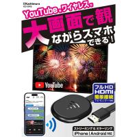 【商品説明】スマートフォンの画面をワイヤレスでミラーリング。YouTubeストリーミング再生接続が可能なMiracastレシーバー。Wi−Fiダイレクト接続はネット環境不要。 Wi−Fi規格の電波を用いて本製品とスマートフォンを直接接続します。無線LANルーターのアクセスポイントを経由して本製品とスマートフォンを接続します。大画面テレビやモニター、カーナビでも使える480p〜1080p/フルHD対応。【仕様】●無線方式:無線LAN(Wi−Fi) ●準拠規格:IEEE802.11b/g/n、2.4GHz ●通信周波数帯域:2.4GHz※5GHz非対応 ●最大解像度:FullHD(1920×1080ピクセル) ●通信距離:最大約10m ●端子:HDMI端子 ●電源:USB−A・5V0.5A ●著作権保護:HDCP対応※動画コンテンツによっては表示できません ●動作環境:0〜40℃(結露しないこと) ●付属品:アンテナケーブル(約50cm) ●本体サイズ:50W×65H×11Dmm ●重量:28g(HDMIコード部含まず)