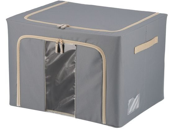 【商品説明】衣服やタオル類などの収納に大活躍!また男女問わず使え、お部屋に馴染んでくれる落ち着いたカラーです。 窓付きで中身が見えるので、チャックを開けて確認する手間が省けます。 取っ手が付いて持ち運びしやすく、クローゼットから引っ張り出すときにも便利です。【仕様】●カラー:グレー ●サイズ:幅500×奥行400×高さ360mm ●重量:1.1kg ●詳細:内容量/72L ●材質:ポリエステル/スチール