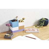 【商品説明】・組み合わせて使いながら、収納を楽しめる卓上収納用品。同シリーズの製品を重ねて使うこともできます。【仕様】●色:ブルー●サイズ:(本体)幅90×奥行き90×高さ128mm、(トレー内寸)約幅84×奥行き84×高さ15mm、(ボックス内寸)約幅78×奥行き78×高さ44mm●材質:紙(ポリプロピレン貼)●構成:蓋トレー×1、ボックス×2●最上段の上には、パーツを重ねることはできません。 eco_st_1