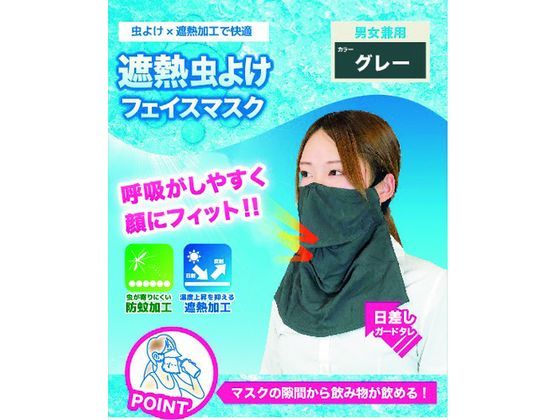 【お取り寄せ】勝星 防蚊冷感フェイスマスクグレー BT-400-GRY 暑さ対策用保護具 安全保護具 作業