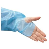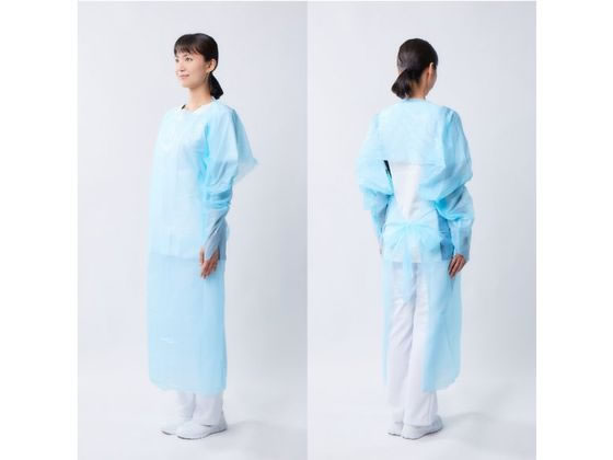 【商品説明】●袖ありタイプ ●バリア性が高く、焼却時に有害物質の出ないポリエチレン製 ●血液や薬液などの飛散から着用者を保護 ●袖口はサムループ付き【仕様】●カラー:ブルー ●サイズ:フリー ●着丈:121cm●身幅:82cm●裄丈:90cm●首回り:27cm ●入数:15枚/箱 ●未滅菌