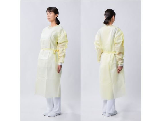 【商品説明】●AAMIレベル1のバリア性 ●超音波溶着による縫製 ●袖にはニット素材を採用 ●防護性が高く、通気性の良い素材を使用【仕様】●カラー:イエロー ●サイズ:フリー ●着丈:122cm●身幅:66cm ●肩幅:23cm●袖丈:58cm ●入数:10枚/パック ●未滅菌