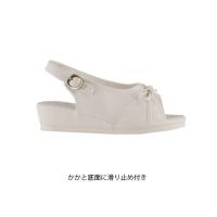 【仕様】バックストラップは窮屈な絞めつけ感を緩和するため、一部ゴムを採用しています。クッション性を重視し、中敷き内にEVAスポンジを配しました。 ●カラー:ブラック●サイズ:LL(適応24.5〜25.0cm)●足囲:3E●ヒール高:約40mm●脱ぎ履きしやすいゴム付き●足が疲れにくいアーチフィット●かかと底面にすべり止め付き●材質:アッパー/PVC、中敷/PVC、ソール/EVA・ゴム