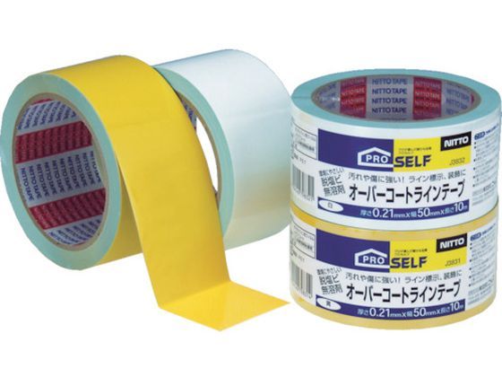 【商品説明】●屋内用。案内表示・構内・校内ライン表示、体育館の競技用ラインに。オフィス内の区画・通路の標示、見本市会場・体育館の指示線・ライン表示用。●テープ表面に汚れや傷が付きにくいコーティング加工をしています。●基材にはポリオレフィンを使用、また鉛などの重金属を含まない有機系顔料を使用し、粘着剤にも無溶剤タイプを使用した環境対応製品です。【仕様】●型番:J3832 ●色:ホワイト ●幅(mm):50 ●厚さ(mm):0.21 ●長さ(m):10 ●粘着力:15N/10mm ●引張強度:63.75N/10mm ●切断にはカッターが必要 ●基材:特殊ポリオレフィン ●粘着剤:ゴム系
