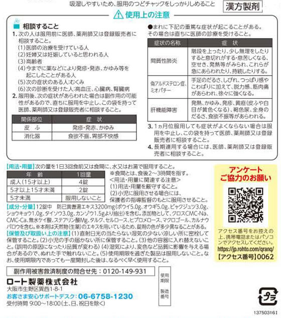 体力中等度以下で、疲れやすく、汗のかきやすい傾向があるものの次の諸症:肥満に伴う関節の腫れや痛み、むくみ、多汗症、肥満症(筋肉にしまりのない、いわゆる水ぶとり)