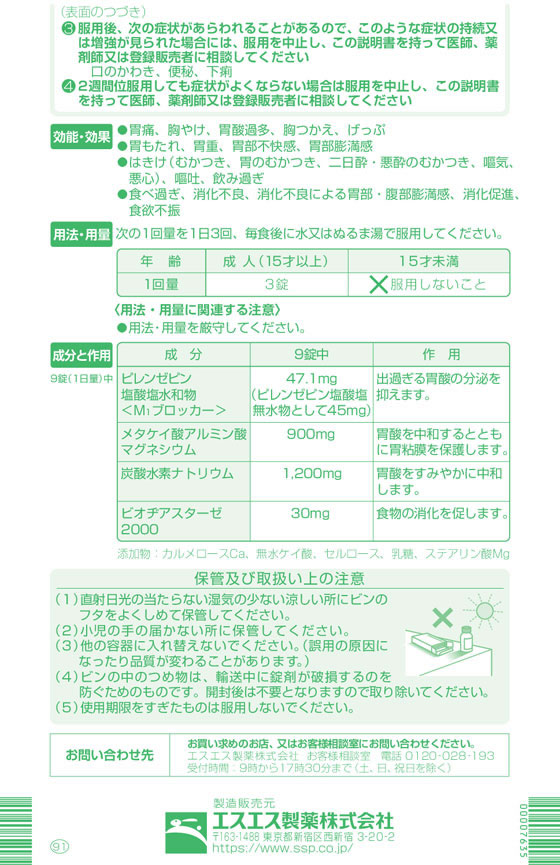 ピレンゼンピン塩酸塩が過剰な胃酸分泌を抑え、つらい胃の痛みによく効きます。【セルフメディケーション税控除対象】