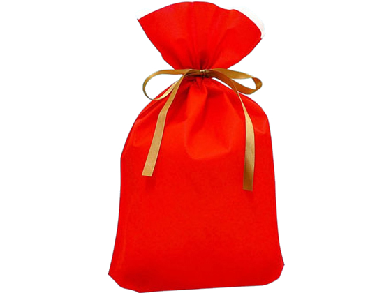 カクケイ 不織布リボン付巾着袋(マチ付) 10枚 レッド LL FK3071 手提げ袋 不織布 手提袋 ラッピング 包装