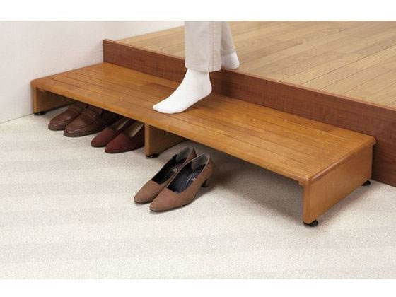 【商品説明】デザイン性と機能性を兼ね備えた玄関台。頑丈で安定性に優れ高級感ある仕上がり、昇り降りがぐんと楽になります。 玄関での足腰のつらさを緩和する便利グッズ。 脚部にはガタつき防止のアジャスター付き。 踏み板の表面には溝が彫ってあるため滑りにくい。 見ばえのいい木製のしっかりした造りの玄関台。昇り降りがぐんとラクに。 組立不要完成品【仕様】●サイズ:(約)幅120×奥行35×高さ14.5〜15.5cm、天板厚さ/(約)2cm ●重さ:(約)7kg ●素材:本体/MDF転写プリント、アジャスター/ポリプロビレン ●台の下には靴が収納できます(最大4〜6足)※婦人靴を目安にしております