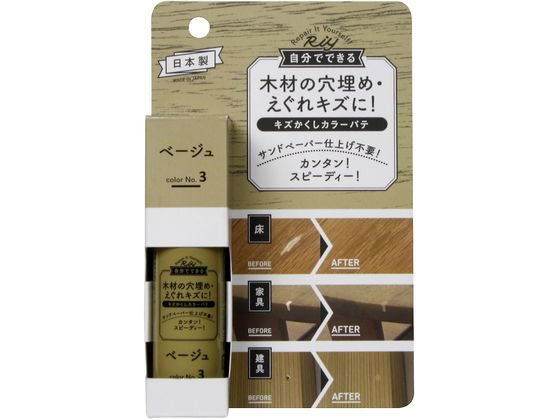 【商品説明】家具・テーブル・イス・扉・フローリング等の木部のキズ補修に!キズ部分にパテを注入して待つだけ簡単補修。木材の穴埋め・えぐれキズに! サンドペーパー仕上げ不要! ※本剤は、硬化前は色が薄く、硬化後に色が濃くなります。【仕様】●成分:水系アクリル樹脂、炭酸カルシウム、顔料、水●内容量:30g●付属品:ヘラ●硬化:3〜4時間で実用硬化/24時間で完全硬化●カラー:ベージュ hikkoshi_4
