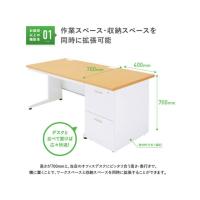 【商品説明】一台で作業スペースと収納スペースを同時に拡張できるため、急なオフィスの拡張や、増えすぎた書類の整理にオススメです。セキュリティもしっかり対策できて一箇所の鍵(カギ)で、引き出しの集中管理が可能です。中段と下段には、仕切り板が一枚ずつ付いていますので、ファイルなどを見やすく分類収納することができます。【仕様】●外寸法:幅400×奥行700×高さ700mm●天板厚さ:30mm●引出内寸法:(上・下段)幅318×奥行486×高さ285mm●材質:天板/高圧メラミン樹脂ポストフォーム加工、幕板・引出/スチール、アジャスター/ABS●質量:22.7kg●耐荷重:天板/約kg●引出レール仕様:ダブルサスペンション機能●引出ロック方法:オールロック機能●カラー:ナチュラル●付属品:仕切板/上段用1枚・下段用1枚、鍵2本●必要工具:プラスドライバー●組立人数:1人●組立時間:15分●生産国:中国●注文単位:1台 ofkg_02 ofkg_06