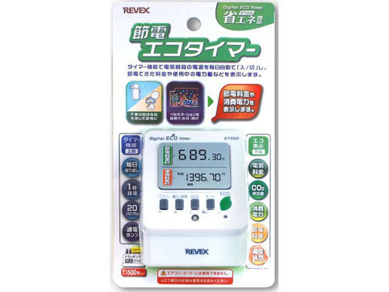 【商品説明】電気器具のスイッチを自動で”入/切”出来るタイマー機能と、消費電力や電気料金などがわかるエコ機能を併せ持ったタイマーです。【仕様】電気器具のスイッチを自動で”入切”出来るタイマー機能と、消費電力や電気料金などがわかるエコ機能を併せ持ったタイマーです。●タイマーは一度のセットで繰り返し毎日、または曜日ごとに設定が可能です。●曜日ごとに設定可能。●20プログラムまで設定可能。●トラッキング防止プラグ採用。●デジタルだから時間誤差が少ない。●通電が一目で確認できるランプ付き。●タイマーで節電した料金を自動表示します。