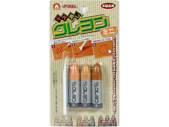 【商品説明】家具やフローリング、ドア、柱、建具など木製品のキズ補修に。3色セットのミニタイプ【仕様】●成分:石油系ワックス、土壌顔料、パラフィン●正味量:約6g×3●融点:約60度●付属品:仕上用ヘラ●カラー:ナチュラルタイプ hikkoshi_4