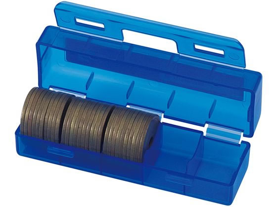 【商品説明】硬貨の整理、集計に便利なコインケースです。10枚ごとに仕切りがついているので、集計しやすくなっています。上蓋にも仕切りをつけることで硬貨の飛散を防止します。2箇所の留め具で上蓋を固定し、落下時でもケースが開きにくい安心設計です。硬貨別に色分けされているので管理もひと目でわかりやすく効率的です。【仕様】●サイズ:幅85×奥行31×高さ26mm●重量:11g●材質:プラスチック●色:ブルー●硬貨飛散防止機能●10枚区切り●硬貨収納枚数:5円硬貨50枚