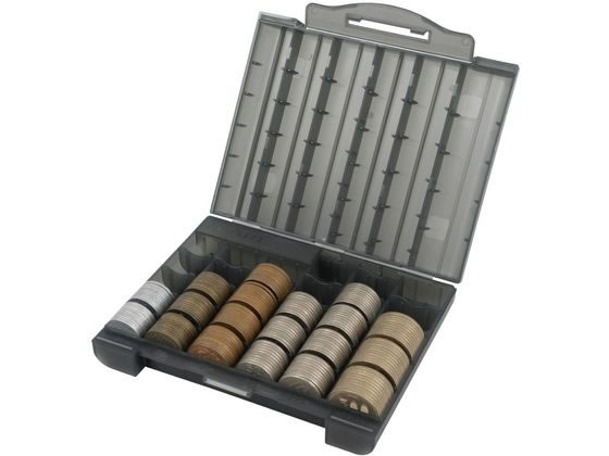 【商品説明】硬貨の収納、保管に便利なコインケースです。 1円、5円、10円、50円、100円、500円の6金種すべて50枚収納でき、10枚ごとに仕切りがついているので、枚数が視覚的にわかりやすくなっています。 上蓋にも仕切りをつけることで、硬貨の飛散を防止します。 大き目な留め具で上蓋をしっかり固定し、落下時にケースが開きにくい構造となっています。 集金業務、宅配業務などで持ち運びに便利なサイズです。【仕様】●サイズ(フタ閉め時):幅152×奥行120×高さ33mm●質量:135g●材質:プラスチック●色:グレー●硬貨収納枚数:各金種50枚(1円、5円、10円、50円、100円、500円)●硬貨飛散防止●注文単位:1個