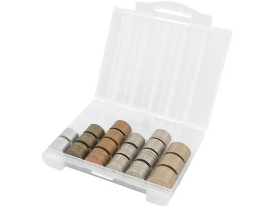 【商品説明】硬貨の収納、保管に便利なコインケースです。 1円、5円、10円、50円、100円、500円の6金種すべて50枚収納でき、10枚ごとに仕切りがついているので、枚数が視覚的にわかりやすくなっています。 上蓋にも仕切りをつけることで、硬貨の飛散を防止します。 大き目な留め具で上蓋をしっかり固定し、落下時にケースが開きにくい構造となっています。 集金業務、宅配業務などで持ち運びに便利なサイズです。【仕様】●サイズ(フタ閉め時):幅152×奥行120×高さ33mm●質量:135g●材質:プラスチック●色:クリア●硬貨収納枚数:各金種50枚(1円、5円、10円、50円、100円、500円)●硬貨飛散防止●注文単位:1個