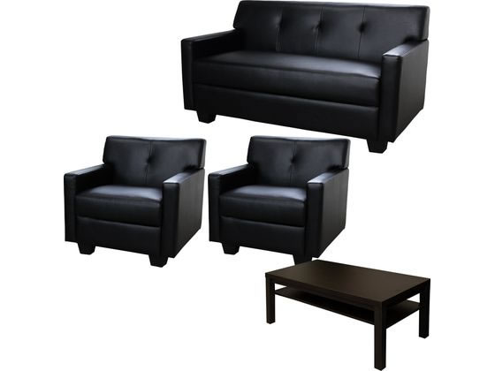 【仕様】●品番:CLN−T3S−FW−BK●カラー:ブラック●サイズ:【応接ソファ 2人掛け】幅1360×奥行700×高さ690(座面高390)mm、【応接ソファ1人掛け】幅680×奥行700×高さ690(座面高390)mm、【センターテーブル】幅1100×奥行550×高さ450mm●重量:【応接ソファ 2人掛け】24.5kg、【応接ソファ 1人掛け】17.5kg、【センターテーブル】17kg●【応接ソファ】本体:木フレーム、張地:PUレザー※抗菌・難燃生地仕様→背・座・肘部、それ以外は通常の合成皮革、クッション材:ウレタンフォーム、脚:PP樹脂・【センターテーブル】天板:低圧メラミン樹脂化粧木質ボード、ペーパーコア、PVCエッジ、脚部:PVCシート化粧木質ボード※原則、軒先(玄関先)渡しとなります。 階上、階下となる場合、またエレベーターのご使用ができない場合、段差があるなど、納品場所の状況によりましては1階軒先でのお渡しとなります。●保証期間:1年間 【別途送料について】 沖縄・離島・一部北海道や山間部へのお届けの場合、別途送料の発生、もしくはお届けができない場合がござい