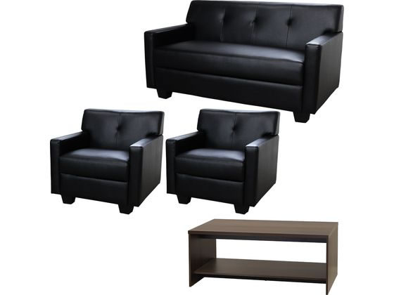 【仕様】●品番:CLN−T13S−FW−BK●カラー:ブラック●サイズ:【応接ソファ 2人掛け】幅1360×奥行700×高さ690(座面高390)mm、【応接ソファ1人掛け】幅680×奥行700×高さ690(座面高390)mm、【センターテーブル】幅1100×奥行550×高さ450mm●重量:【応接ソファ 2人掛け】24.5kg、【応接ソファ 1人掛け】17.5kg、【センターテーブル】17kg●【応接ソファ】本体:木フレーム、張地:PUレザー※抗菌・難燃生地仕様→背・座・肘部、それ以外は通常の合成皮革、クッション材:ウレタンフォーム、脚:PP樹脂・【センターテーブル】天板:メラミン樹脂化粧板、芯材:MDF+ハニカムコア、エッジ:PVC、脚部:ABS樹脂※原則、軒先(玄関先)渡しとなります。 階上、階下となる場合、またエレベーターのご使用ができない場合、段差があるなど、納品場所の状況によりましては1階軒先でのお渡しとなります。●保証期間:1年間 【別途送料について】 沖縄・離島・一部北海道や山間部へのお届けの場合、別途送料の発生、もしくはお届けができない場合がございます。 別