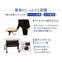 平行スタックですっきりコンパクトに収納可能な折りたたみテーブル。