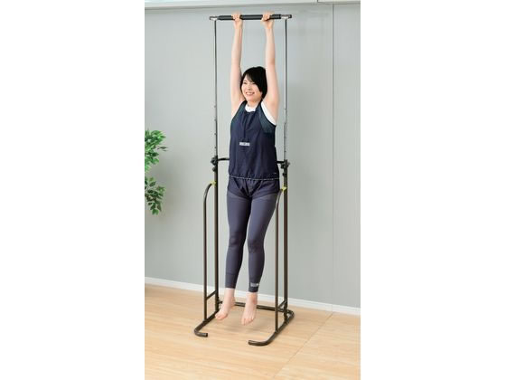 【商品説明】ぶら下がって背筋を伸ばせば、肩や腰・背中などの筋肉が伸びてスッキリ!身体を左右に振ってウエストの引き締めにも!こんな方にオススメ:腰痛・肩こりが辛い、背筋を伸ばして姿勢を良くしたい。ぶら下がってスッキリ背筋伸ばし!しっかり握れるやわらか素材。約180〜220cmの5段階調節可能。安定感のある補強パイプ付き。新聞紙1枚のサイズに置ける省スペース設計。雨の日には洗濯物干しにも!【仕様】●色:ダークブラウン●サイズ:(約)幅56×奥行65×高さ180〜220cm●重さ:(約)8kg●耐荷重量:(約)90kg●素材:スチール(粉体塗装・クロムメッキ)●お客様組立式